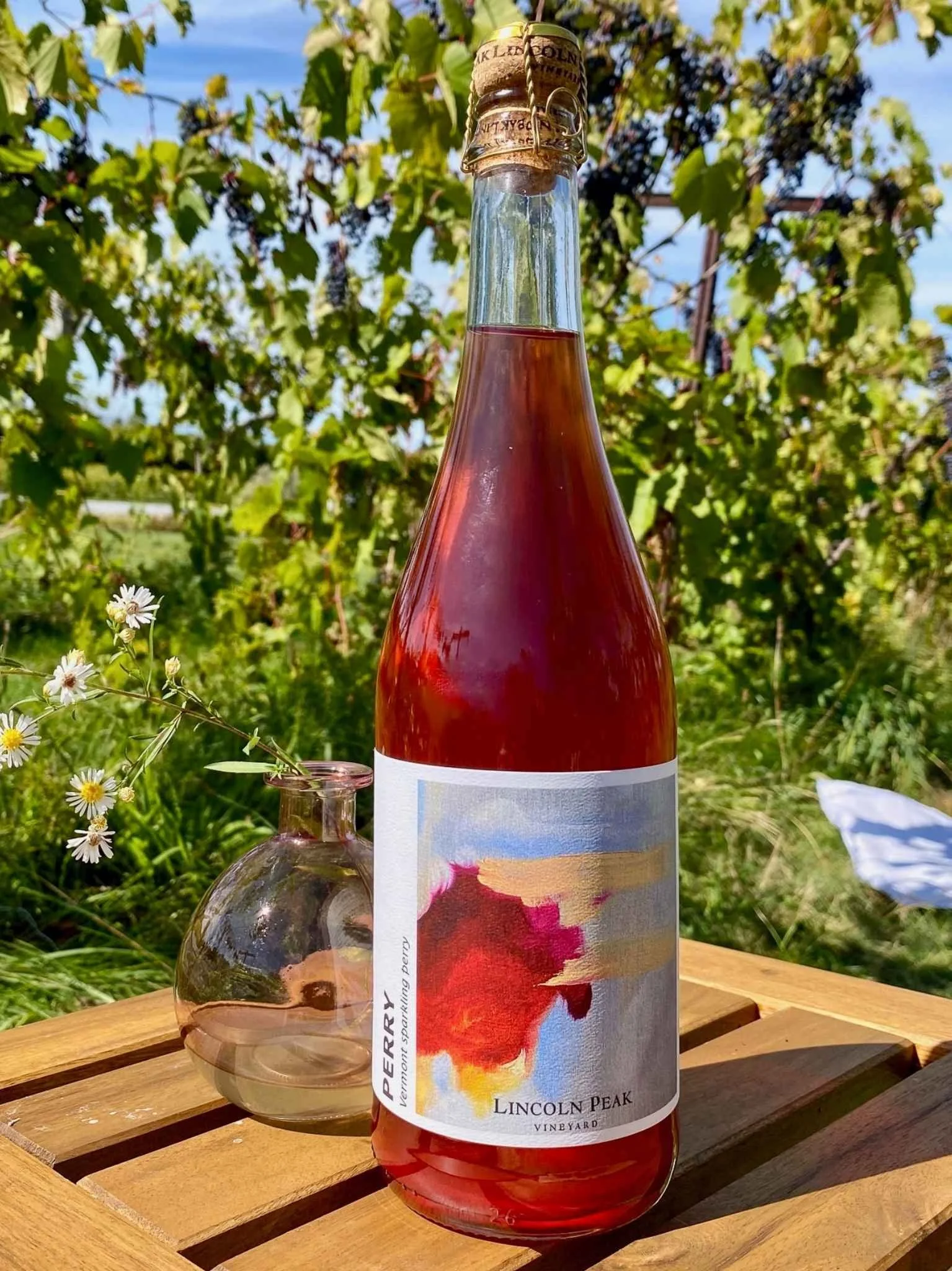 Potomac pears from Champlain Orchards fermented dry, then rested on pressed cranberries from Vermont Cranberry. Secondary fermentation in bottle for natural bubbles.